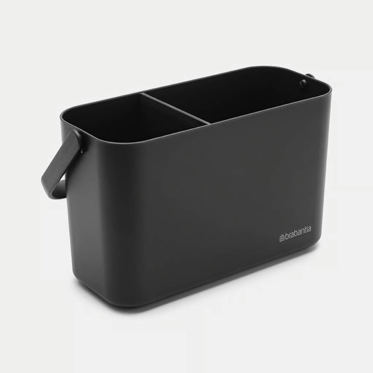 Wrapping up the day with a therapeutic kitchen wipe down? Keep your sponges, cloths and cleaning tools ready to go with this portable Brabantia Cleaning Caddy. This strong & sleek toolbox has enough room to hold your cleaning accessories, and more. The drip tray inside drains water, and the handle doubles as an airing rail for cloths. A great cleaning help.