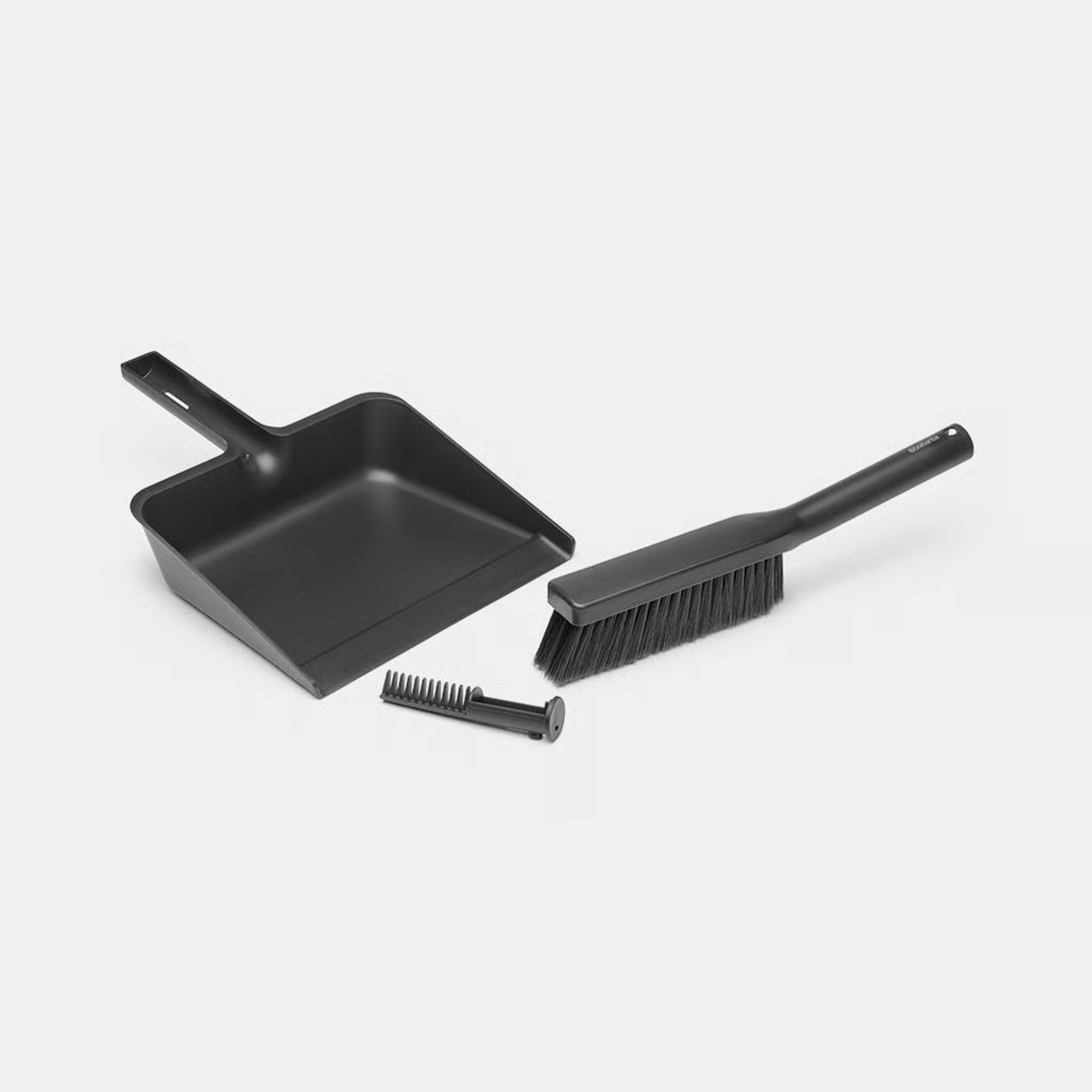 Dropped some pesky crumbs on the kitchen floor? Brabantia's Dustpan and Brush Set is here to the rescue - no need to vacuum. This well and truly thought-through set looks, feels and works a treat. The brush even has a little comb hidden in its handle, so you can clean the brush bristles whilst keeping your hands clean! Snap the handle of the brush to the dustpan and hang it from the hole in its handle, or store it standing up. A real dust-have!